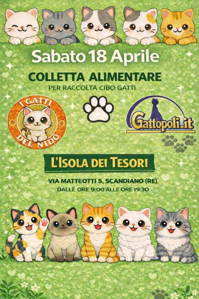 SCANDIANO(RE): COLLETTA ALIMENTARE GATTOPOLI SABATO 18 APRILE 2026
